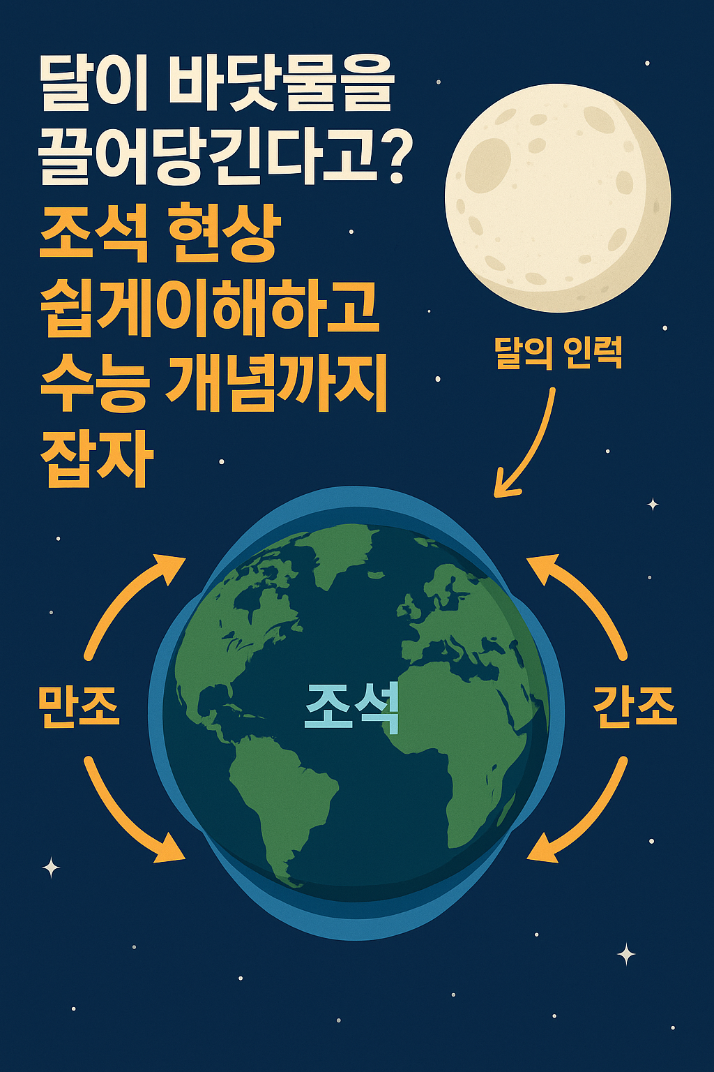 🌊 조석 현상 완전 정리 – 조수간만의 차, 달의 인력, 그리고 수능 개념까지!