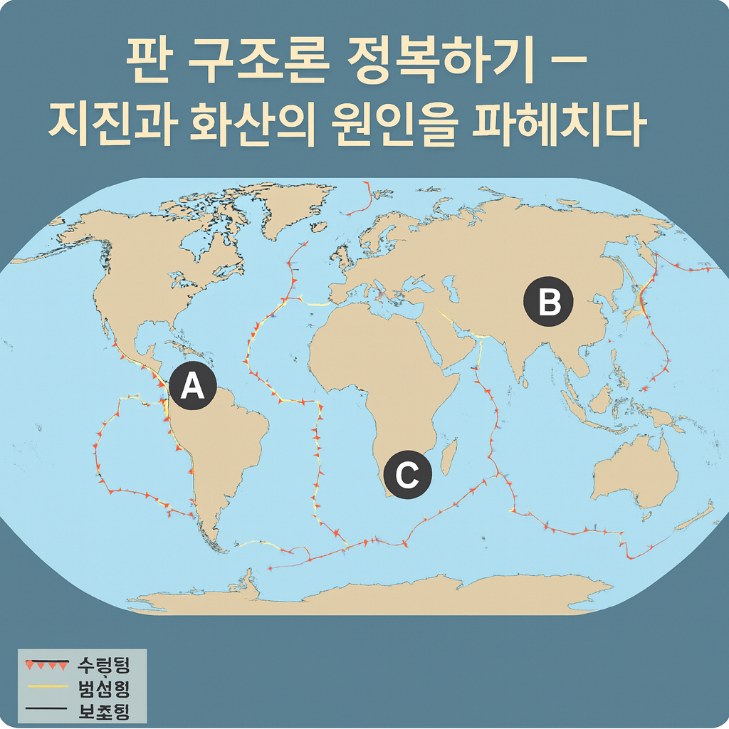 이 개념은 단순해 보이지만, 지진과 화산, 산맥 형성까지 연결되는 중요한 개념으로 수능에서도 자주 출제되는 핵심입니다.